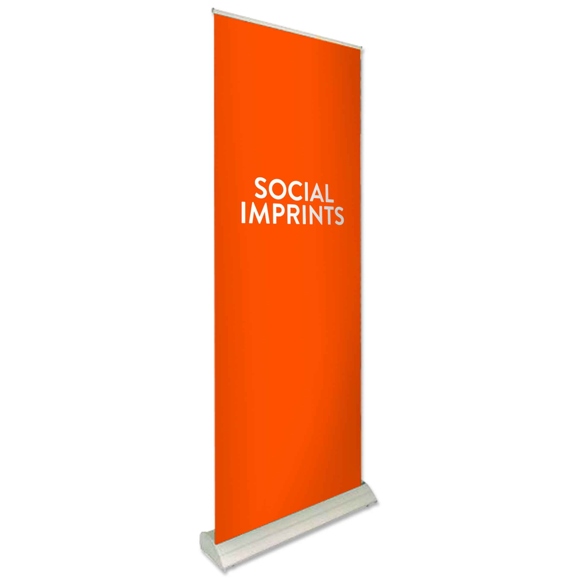 The Deluxe Pro Retractor features a rounded base with durable aluminum end caps, and hook-and-loop fasteners let you swap out banners easily